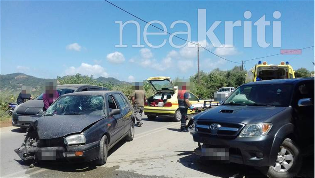 Ο οδηγός του αγροτικού που επέστρεφε από τα Χανιά στο Φουρνέ, υπέστη ελαφρά τραύματα ενώ εκτός κινδύνου νοσηλεύονται η οδηγός και ο συνοδηγός του επιβατικού αυτοκινήτου, όπως μετέδωσε το neakriti.gr.