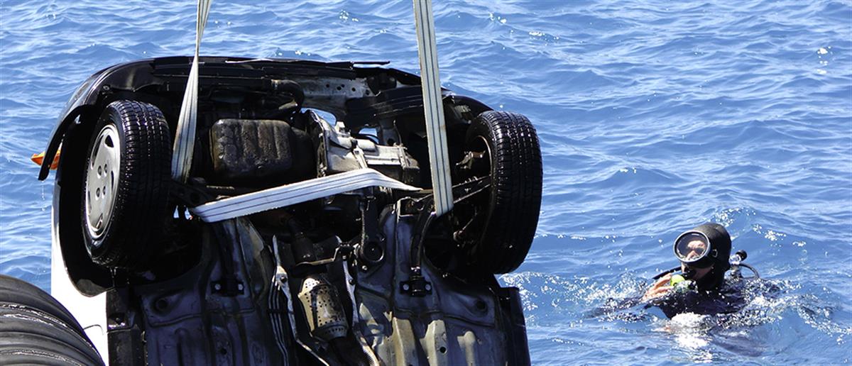 Σύμφωνα με τις πρώτες πληροφορίες, άτομο που επέβαινε στο όχημα ανασύρθηκε έχοντας τις αισθήσεις του με τη συνδρομή ιδιώτη δύτη.