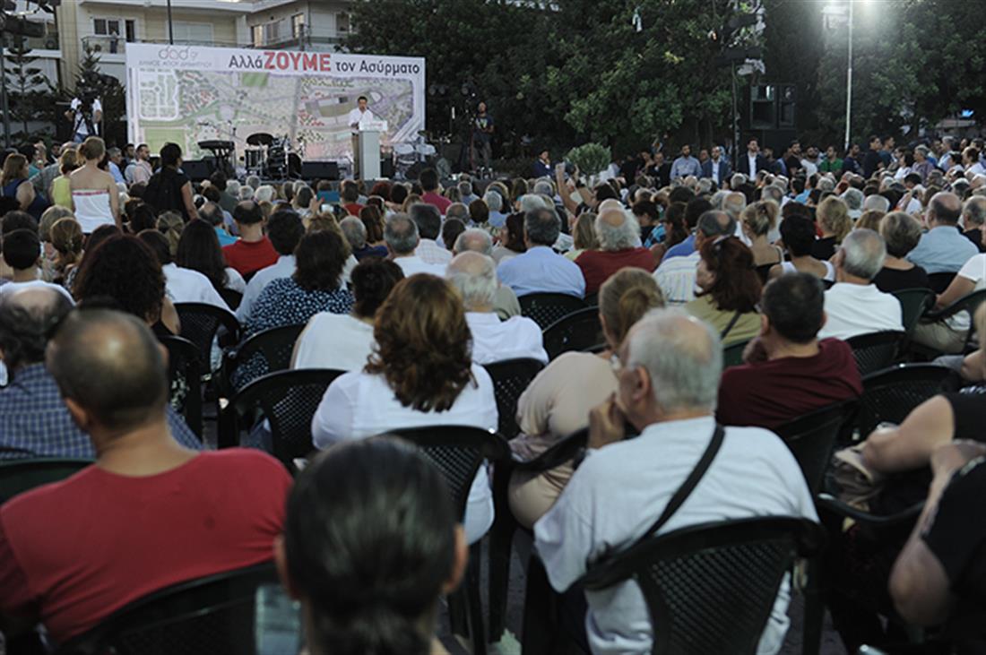 Πριν από τον χαιρετισμό του κ. Τσίπρα, απηύθυνε χαιρετισμό η δήμαρχος Αγ. Δημητρίου Μαρία Ανδρούτσου, η οποία αναφέρθηκε στις προσπάθειες δεκαετιών των δημοτικών αρχών. Ευχαρίστησε τη σημερινή πολιτική ηγεσία για την ανταπόκριση στο αίτημα του Δήμου και των πολιτών χωρίς κανένα αντάλλαγμα, όπως είπε, και με μόνη προϋπόθεση να υλοποιηθεί ο σχεδιασμός που υπάρχει, και τόνισε, τέλος, ότι είναι η πρώτη φορά που εν ενεργεία πρωθυπουργός επισκέπτεται τον Άγιο Δημήτριο.