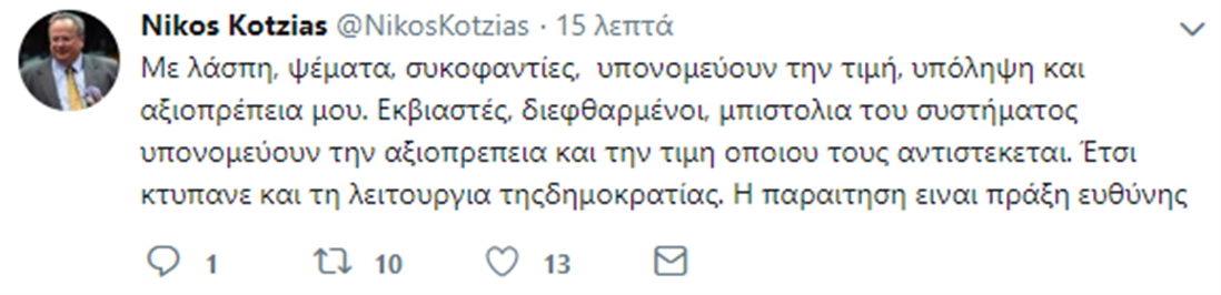 «Γιατί αποπέμφθηκε ο κ. Κοτζιάς και ποιους εννοεί σήμερα ο πρώην υπουργός ότι είναι οι “εκβιαστές και οι διεφθαρμένοι” που “χτυπούν τη Δημοκρατία”;