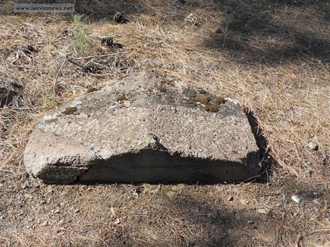 Μια αετωματική επίστεψη μικρού ταφικού μνημείου επεξεργασμένη σε ηφαιστειακό πέτρωμα «ανακάλυψαν» οι Πρόσκοποι μέλη των ομάδων του 2ου Συστήματος Προσκόπων Μυτιλήνης και του 3ου Συστήματος Ναυτοπροσκόπων Μυτιλήνης στο δάσος της Αχλαδερής στον κόλπο της καλλονής Λέσβου. Εκεί όπου πραγματοποιούν τη θερινή τους κατασκήνωση, σε χώρο που ταυτίζεται με τη Νότια Νεκρόπολης της αρχαίας πόλης των Αιολέων, της Πύρρας.
