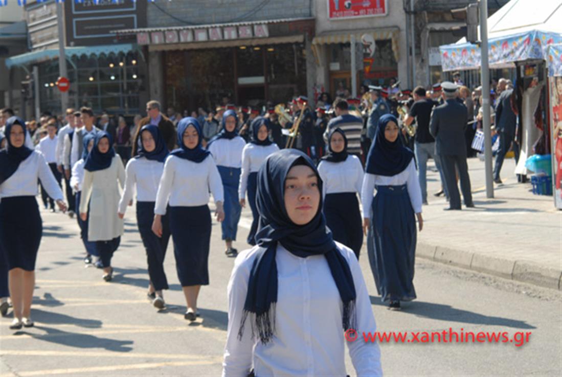 “Πρωτοπορία”… Για πρώτη φορά στην παρέλαση για τη γιορτή των Ελευθερίων της Ξάνθης το σύνολο των μαθητριών μειονοτικού σχολείου (πιθανότατα του Ιεροσπουδαστήριου) παρέλασαν φορώντας μαντίλα.