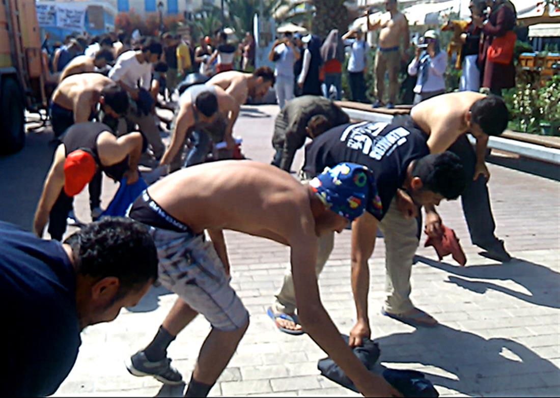 Οι διαδηλωτές αρνήθηκαν αρχικά να αποχωρήσουν, ενώ προθυμοποιήθηκαν να καθαρίσουν με τα ρούχα τους. Μάλιστα έβγαλαν τις μπλούζες τους και άρχισαν να σκουπίζουν την πλατεία με αυτές.