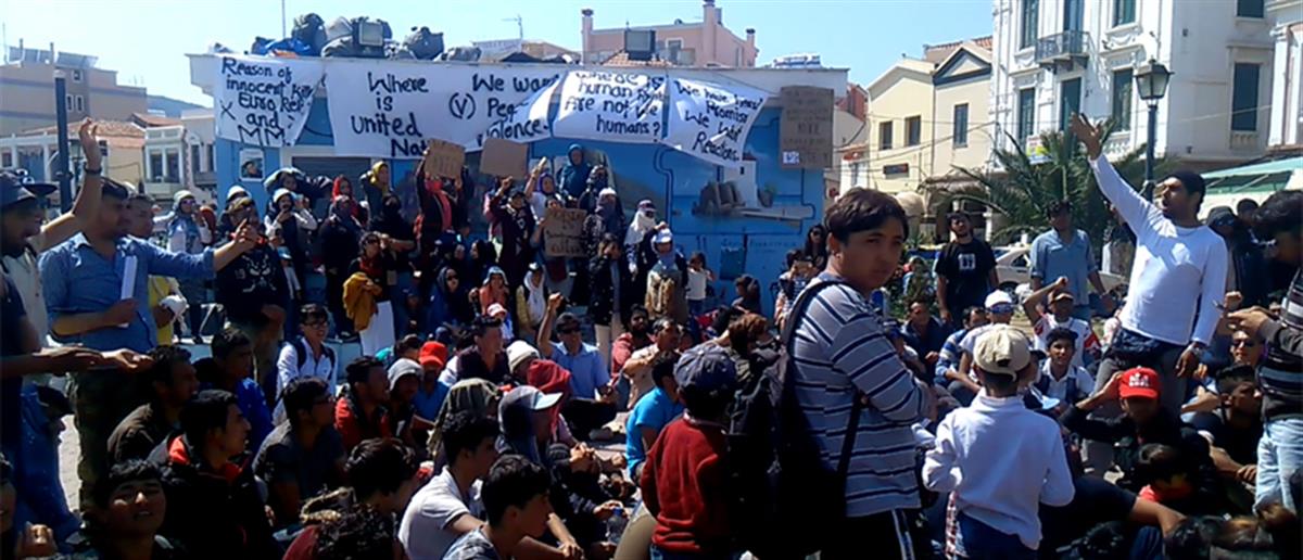 Μυτιλήνη: ένταση με τους μετανάστες που έχουν καταλάβει την Πλατεία Σαπφούς (βίντεο)