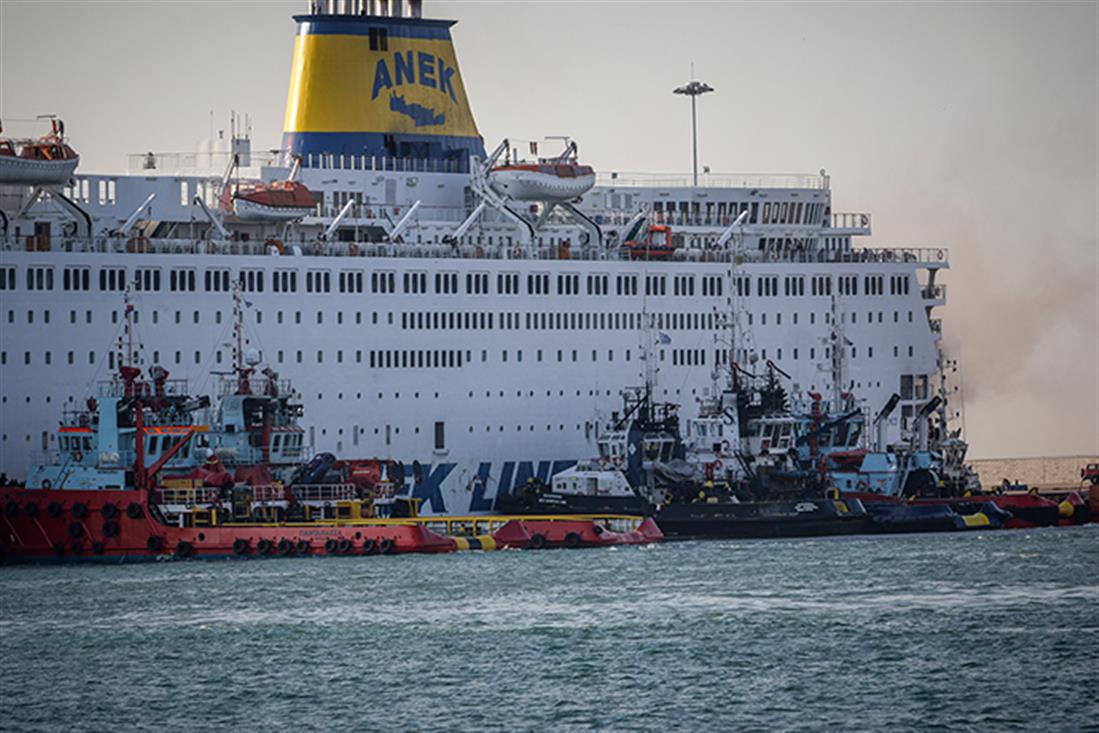 Μέσα στο γκαράζ του «Ελευθέριος Βενιζέλος», που αναγκάστηκε να επιστρέψει στο λιμάνι του Πειραιά στην ακτή Ξαβερίου, αποβιβάζοντας τους 875 επιβάτες, παραμένουν εστίες καπνού, ενώ ήδη ξεφορτώθηκαν κάποια από τα 80 φορτηγά και 152 οχήματα.