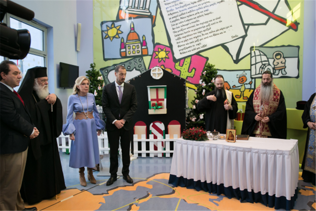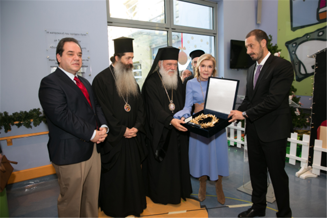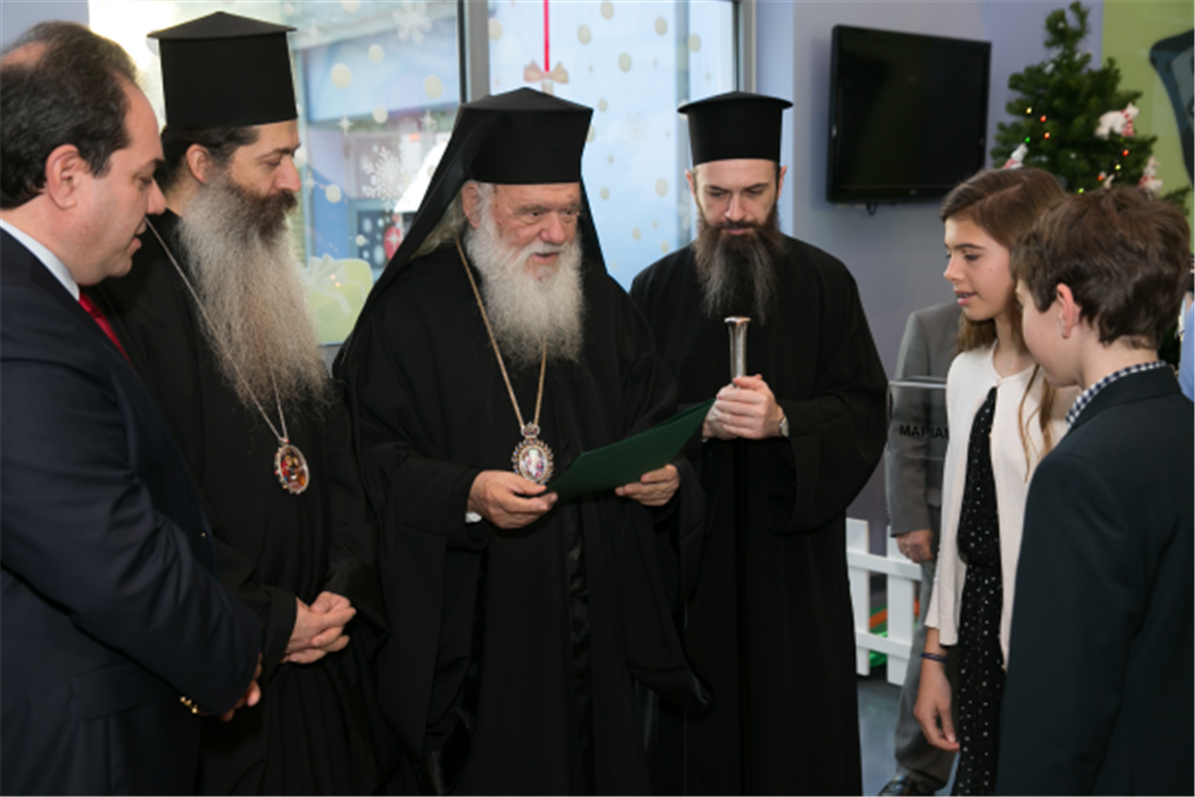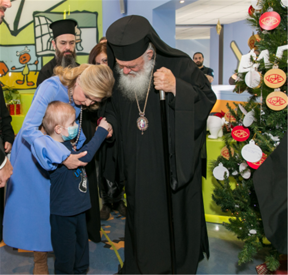 Τον Αρχιεπίσκοπο υποδέχτηκε η Πρόεδρος του Σωματείου “ΕΛΠΙΔΑ-Σύλλογος Φίλων Παιδιών με καρκίνο” κυρία Μαριάννα Β. Βαρδινογιάννη, ο Διοικητής των Νοσοκομείων Παίδων “Η Αγία Σοφία” και “Π.&Α. Κυριακού” κύριος Μανώλης Παπασάββας, τα μέλη των Διοικητικών Συμβουλίων των Συλλόγων “ΕΛΠΙΔΑ” και “ΟΡΑΜΑ ΕΛΠΙΔΑΣ” καθώς και το ιατρικό και νοσηλευτικό προσωπικό της Ογκολογικής Μονάδας.
