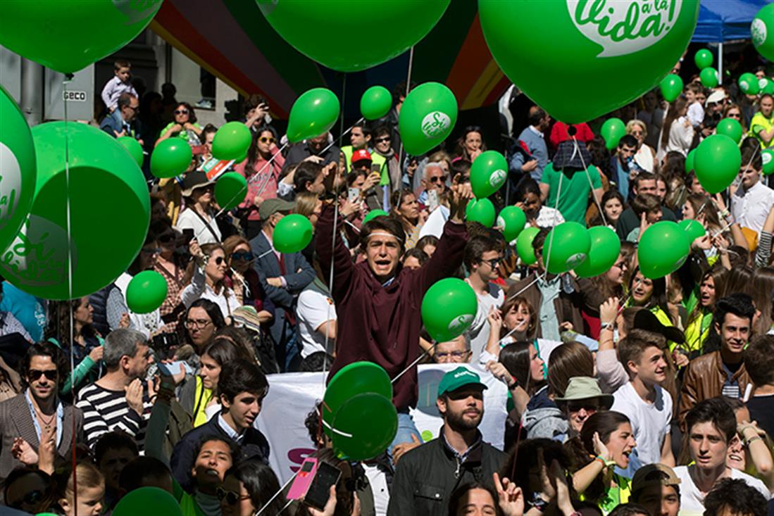 Φωνάζοντας τα συνθήματα «Ναι στη ζωή» και «Η νεολαία ενωμένη αγωνίζεται για τη ζωή», οι διαδηλωτές έκαναν πορεία στην οδό Σεράνο μέχρι την Πουέρτα δε Αλκαλά, όπου άφησαν εκατοντάδες πράσινα μπαλόνια «στη μνήμη των παιδιών που δεν γεννήθηκαν», όπως είπαν οι οργανωτές.