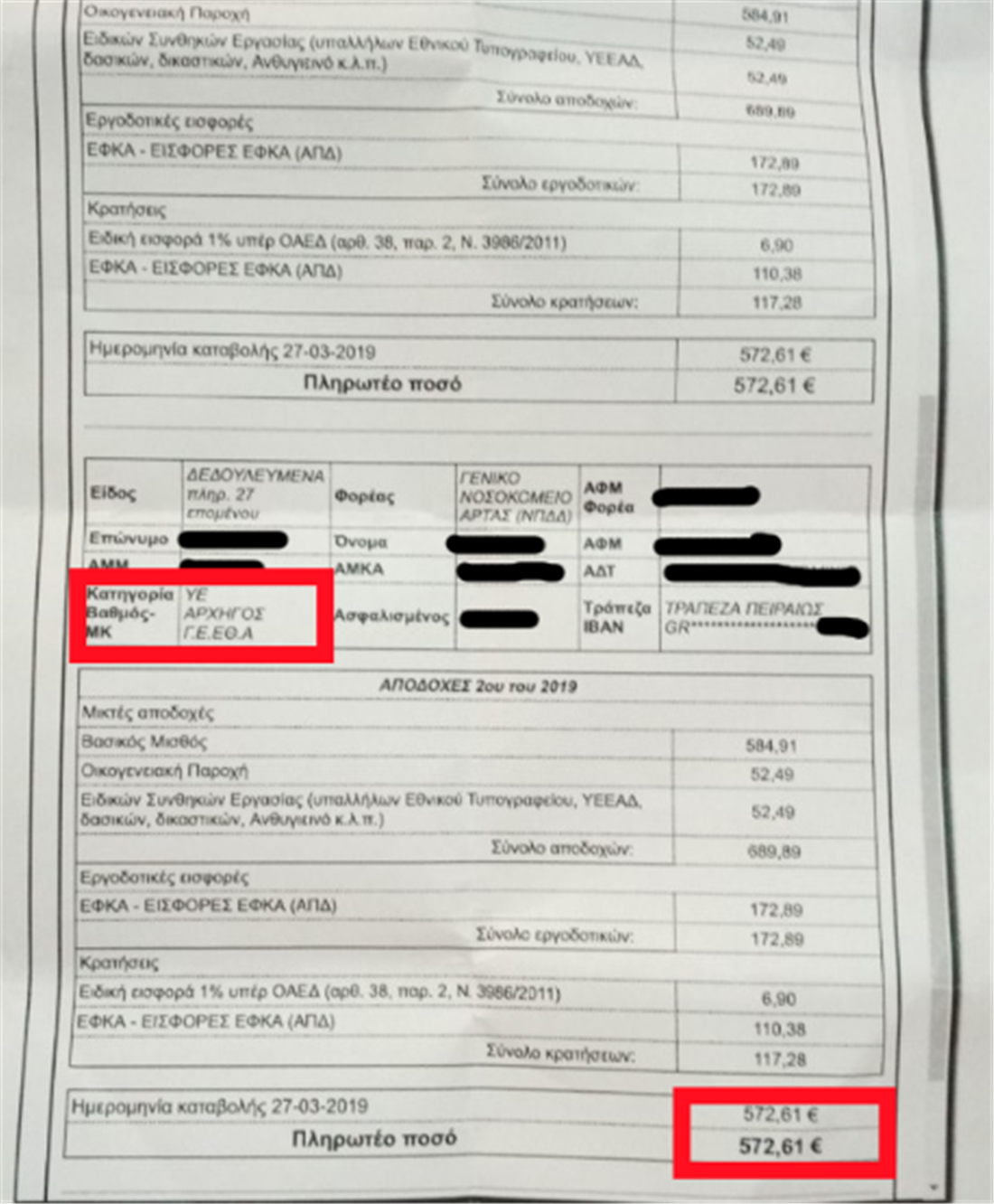 Δεν πίστευε στα μάτιατης μια τραπεζοκόμος από το Γενικό Νοσοκομείο Άρτας όταν πήρε στα χέρια της το αποδεικτικό της μισθοδοσίας της.