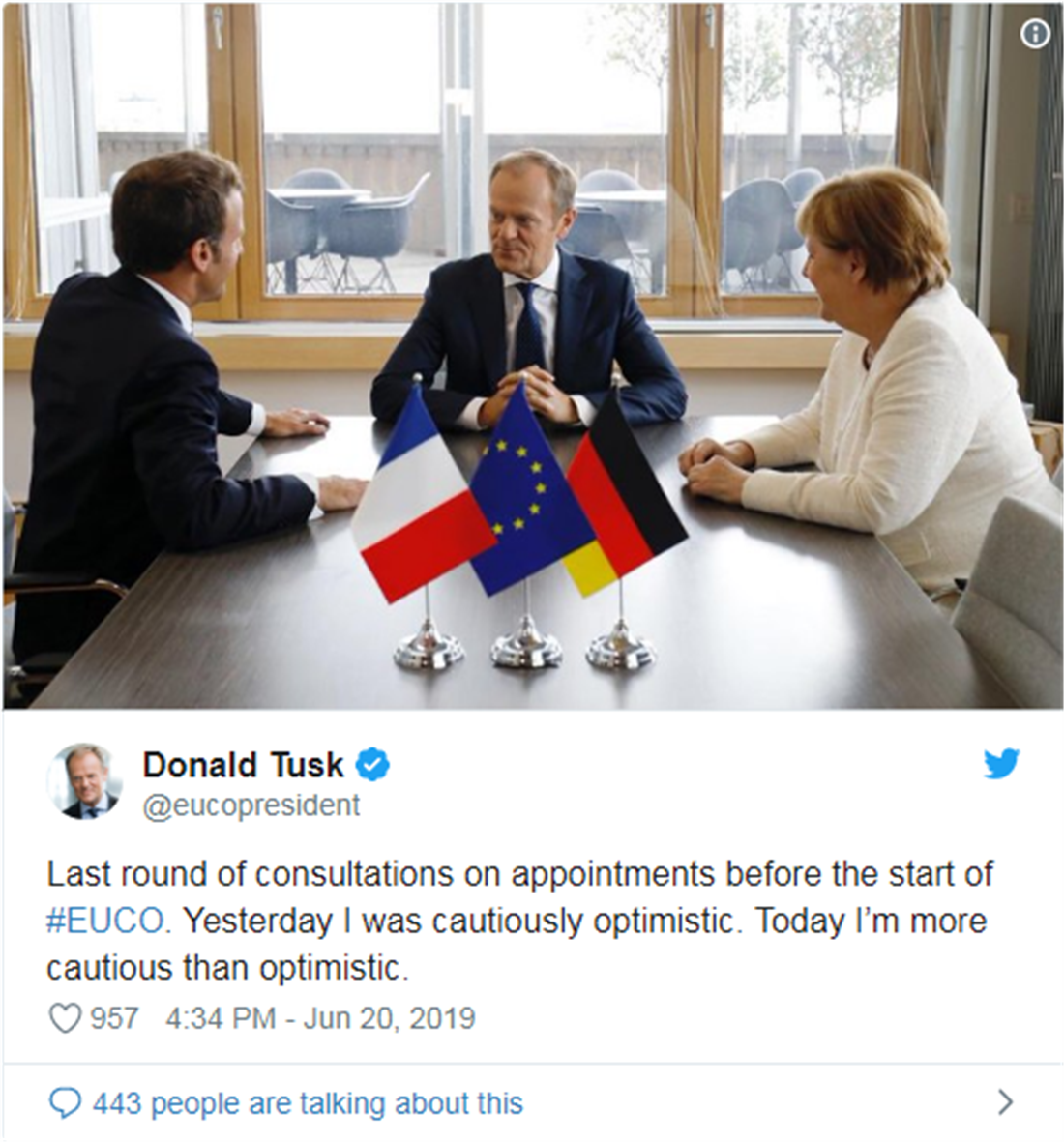 Η επιλογή προσώπου για τη διαδοχή του Λουξεμβούργιου Γιούνκερ ήταν από την αρχή πολύ δύσκολη υπόθεση, καθώς από την έναρξη της συνόδου κορυφής οι ευρωομάδες των Σοσιαλιστών και Δημοκρατών και του Renew Europe δήλωσαν σαφώς ότι δεν πρόκειται να στηρίξουν τον υποψήφιο του Ευρωπαϊκού Λαϊκού Κόμματος, Μάνφρεντ Βέμπερ.