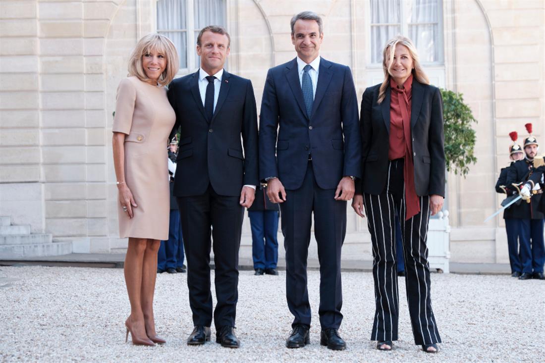 Θερμό ήταν το κλίμα και ανάμεσα στις συζύγους των δύο ηγετών με την Μπριζίτ Μακρόν να υποδέχεται με θερμή χειραψία την Μαρέβα Γκραμπόφσκι.