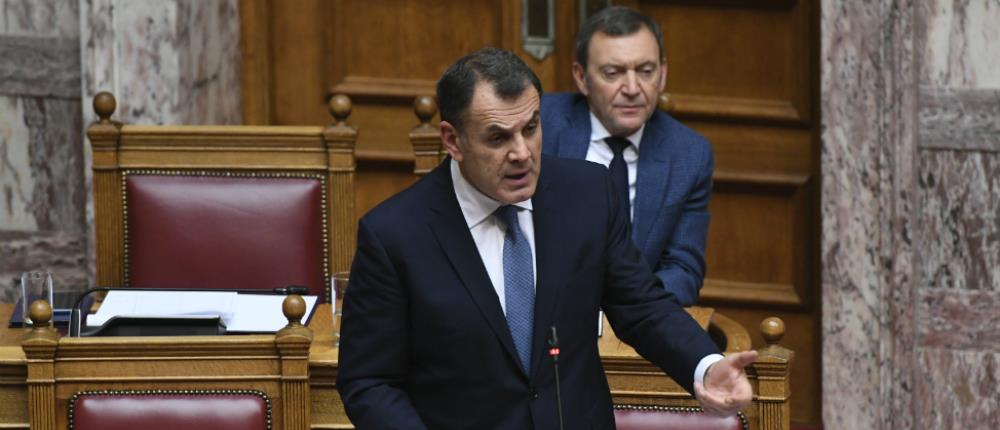 Υπερασπιζόμενος το νομοσχέδιο, ο Υπουργός Εθνικής Άμυνας, Νίκος Παναγιωτόπουλος είπε ότι οι Ένοπλες Δυνάμεις της χώρας μας δεν ετοιμάζονται να πάνε στον πόλεμο αλλά να διασφαλίσουν την ειρήνη. Καλώντας τους βουλευτές να υπερψηφίσουν, είπε ότι το νομοσχέδιο ενισχύει την αποτρεπτική ικανότητα των F-16, επιτρέπει σε όλα τα Mirage να πετούν πάνω από το Αιγαίο και να το ξανασκεπάσουν με τα φτερά τους, και στα υποβρύχια του Πολεμικού Ναυτικού να έχουν τα αναγκαία ανταλλακτικά. «Υπερψηφίστε με αίσθηση εθνικού καθήκοντος. Το νομοσχέδιο επαυξάνει ισχύ των Ενόπλων μας Δυνάμεων και κρατά το ξίφος της Ελλάδας λαμπερό και κοφτερό», είπε ο κ. Παναγιωτόπουλος.