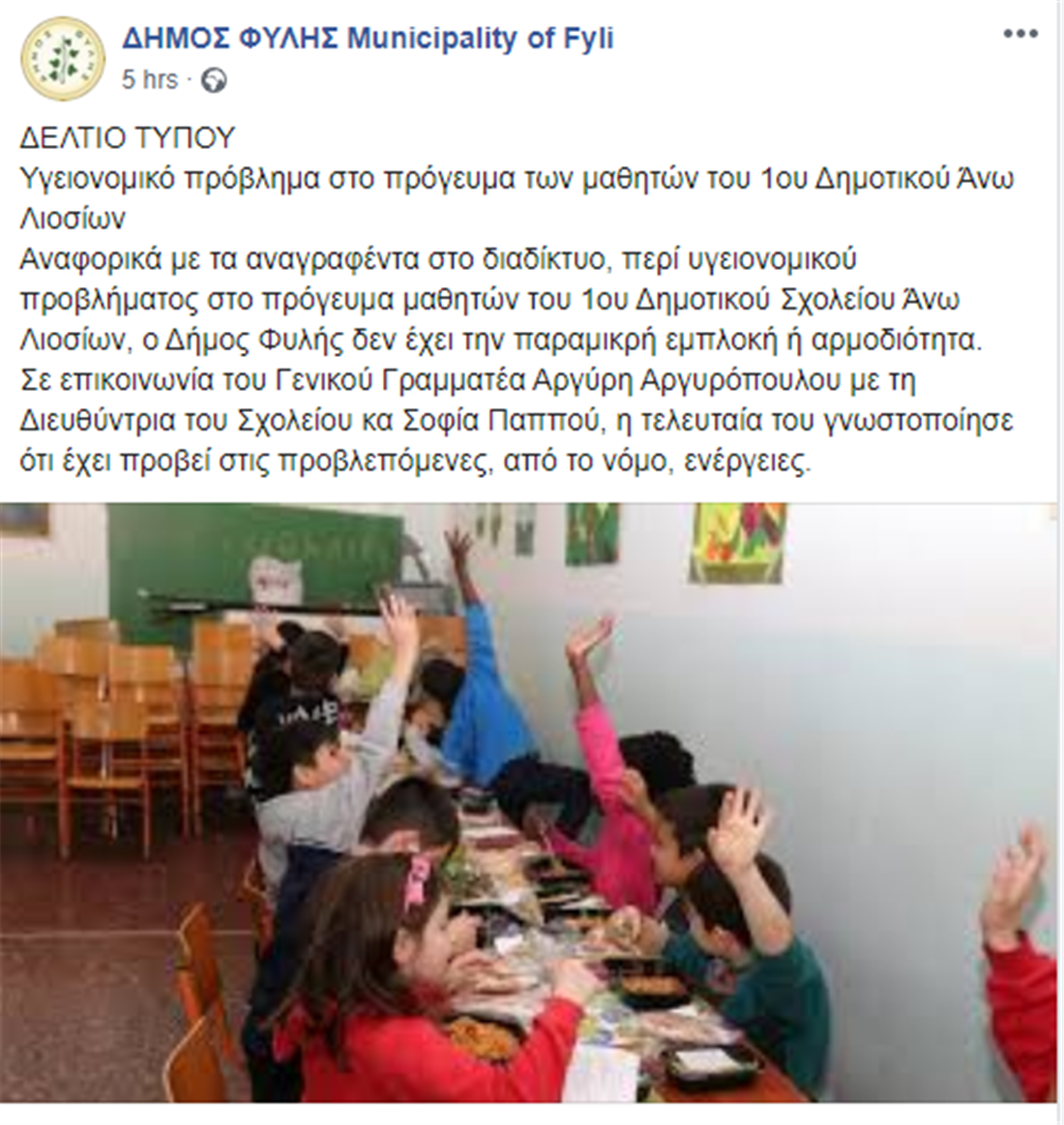 Παράλληλα ο Δήμος Φυλής μετά τον σάλο με την κατσαρίδα ξέσπασε για το εν λόγω εύρημα που μοιράστηκε μέσω του προγράμματος Σχολικά Γεύματα προέβη στην κάτωθι ανακοίνωση: