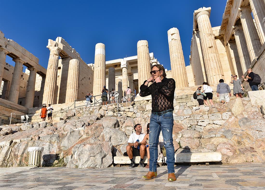 Καρέ - καρέ η ξενάγηση του χουλιγουντιανού ηθοποιού στον Ιερό Βράχο.
