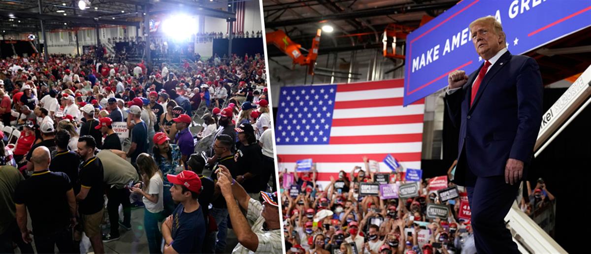 Αψηφώντας την εντολή των αρχών, τις προειδοποιήσεις των επαγγελματιών δημόσιας υγείας και τους κινδύνους της πανδημίας του νέου κορονοϊού, ο Ντόναλντ πραγματοποίησε προεκλογική συγκέντρωση σε κλειστό χώρο.