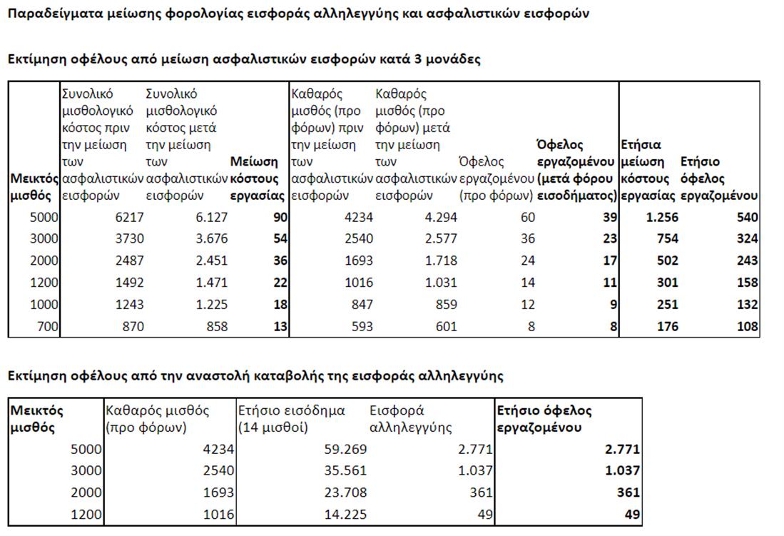 Όφελος από μείωση ασφαλιστικών εισφορών και εισφοράς αλληλεγγύης: