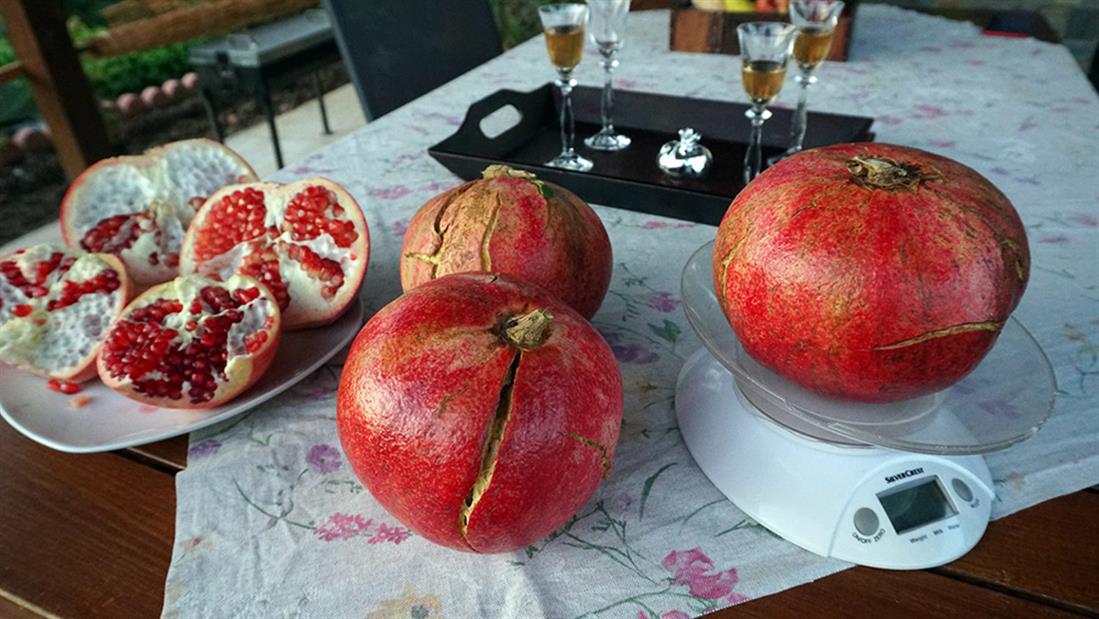 Μάλιστα τα ρόδια κάποιες χρονιές ξεπερνούν ακόμα και τα δύο κιλά. «Πρόσφατα βγάλαμε ρόδι 2,5 κιλά, ενώ συνήθως ξεπερνούν το ενάμισι κιλό τα περισσότερα ρόδια».