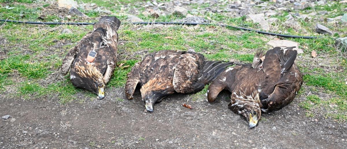 Ερευνήθηκαν οι δύο θέσεις που εξέπεμπαν οι πομποί, όπου και εντοπίστηκαν νεκροί και με εμφανείς ενδείξεις δηλητηρίασης οι δύο Χρυσαετοί, μαζί με έναν ακόμη Χρυσαετό, το αρσενικό του ζευγαριού. Κοντά σε δύο από τους νεκρούς Χρυσαετούς εντοπίστηκαν υπολείμματα νεκρού σαρκοφάγου θηλαστικού μεσαίου μεγέθους, το οποίο πιθανά να κουβάλησαν από μακριά τα πουλιά για να τραφούν. Οι επιστήμονες πιθανολογούν ότι το νεκρό θηλαστικό είχε προηγουμένως καταναλώσει κάποιο δηλητηριασμένο δόλωμα και εν συνεχεία η κατανάλωσή του από τους Χρυσαετούς προκάλεσε δευτερογενή δηλητηρίαση στα πουλιά. Ο νεαρός Χρυσαετός βρίσκονταν σε χαρακτηριστική στάση με ανοιγμένη την ουρά που υποδεικνύει δηλητηρίαση, ενώ έφερε στην πλάτη του τον δορυφορικό πομπό.
