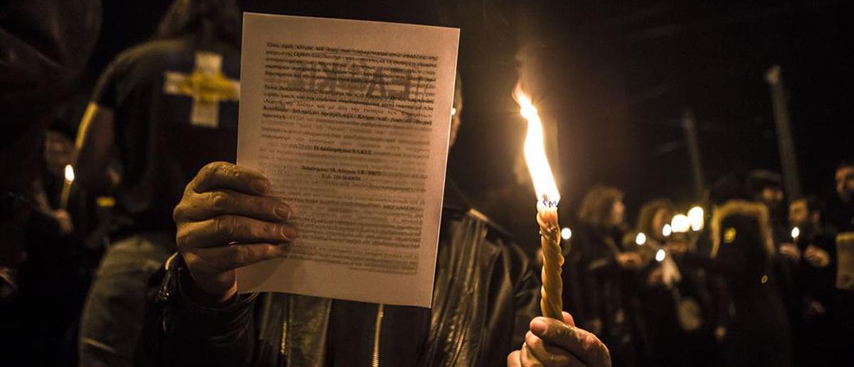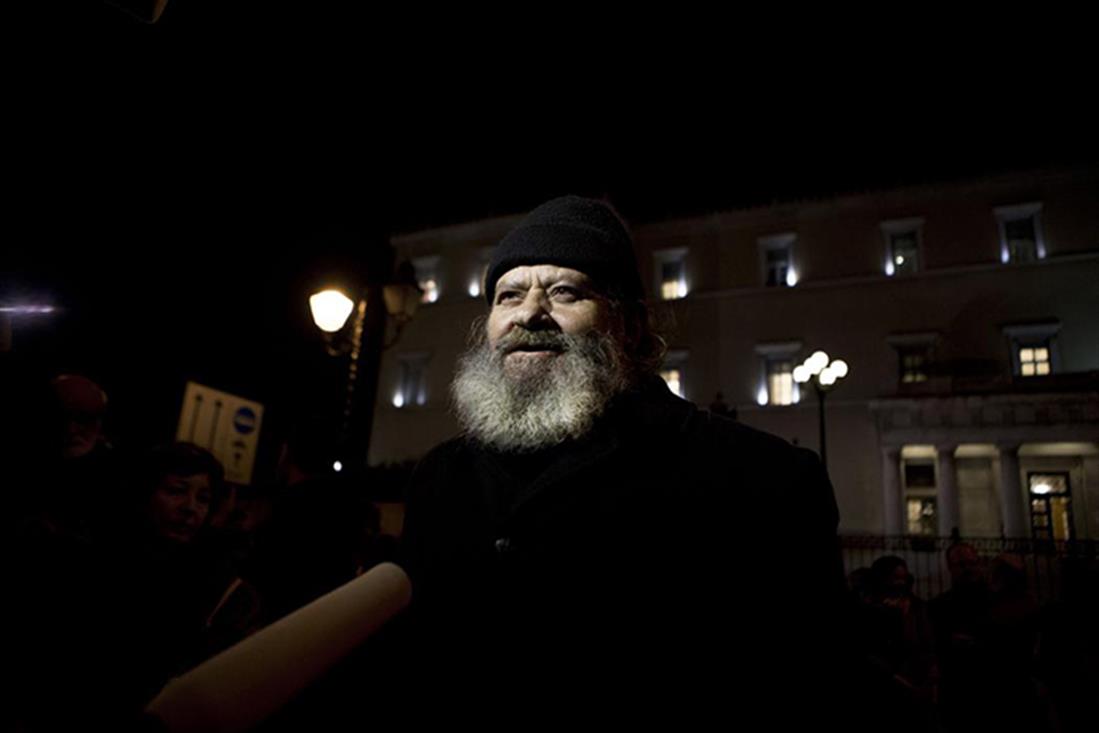 Οπαδοί της ΑΕΚ, μέλη της Χρυσής Αυγής και μοναχοί διαμαρτυρήθηκαν έξω από τη Βουλή.