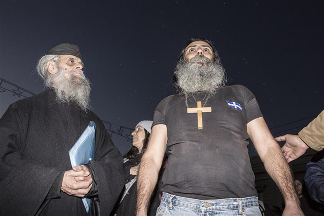 Οι διαφωνούντες της δικαστικής απόφασης που ήθελε ένοχο τον έναν μοναχό –αυτόν με τη μολότοφ- για έκρηξη, εμπρησμό, κατοχή και χρήση εκρηκτικών, καθώς και για παράνομη οπλοχρησία, έναν δεύτερο ένοχο για ηθική αυτουργία και ακόμη έξι, ένοχους για απλή συνέργεια έλεγαν πως μας κυβερνούν αντίχριστοι. Τραγούδησαν τον εθνικό ύμνο και έψαλαν εκκλησιαστικούς ύμνους για να ξορκίσουν το κακό, αφού εκτός των άλλων επεσήμαναν πως «ο κόσμος είναι δαιμονισμένος».