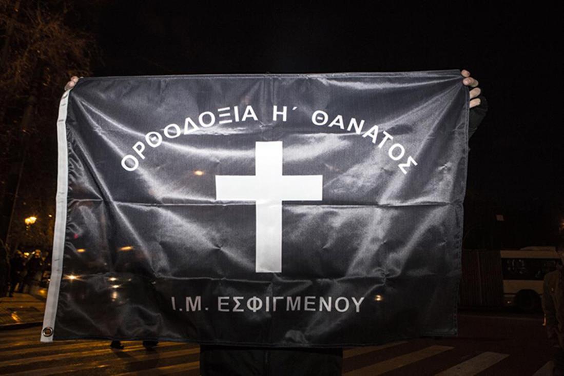 Πριν από λίγες ημέρες οι μοναχοί της Μονής Εσφιγμένου είχαν καλέσει μέσα από το Indymedia της Ορθοδοξίας, πορεία διαμαρτυρίας έξω από το Υπουργείο Εξωτερικών. Η καταδικαστική απόφαση του Μικτού Ορκωτού Δικαστηρίου Θεσσαλονίκης, που έκρινε αυστηρά οκτώ μοναχούς, επιβάλλοντάς τους βαριές ποινές, ήταν πράγματι ικανή να κατεβάσει τα μέλη της Μονής και τους υποστηρικτές τους στον δρόμο. Ανάμεσα στο πλήθος υπήρχαν συντρόφισσες μοναχές, οπαδοί της ΑΕΚ, βουλευτές της Χρυσής Αυγής και φανατισμένοι χριστιανοί, δημιουργώντας μια εικόνα που θα μπορούσε να έχει τίτλο «Αθλητισμός-Χριστιανισμός-Εθνικισμός».