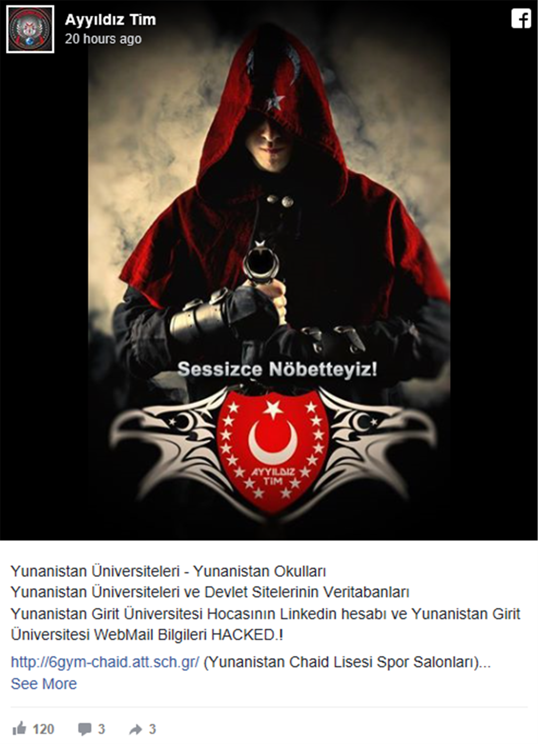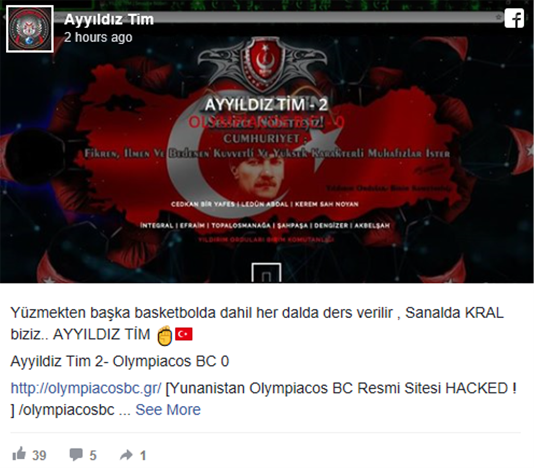 Η ομάδα Ayyildiz Tim, μία από τις παλαιότερες της Τουρκίας, “έριξε” μεταξύ άλλων τα site του Ατρομήτου και του μπασκετικού Ολυμπιακού.