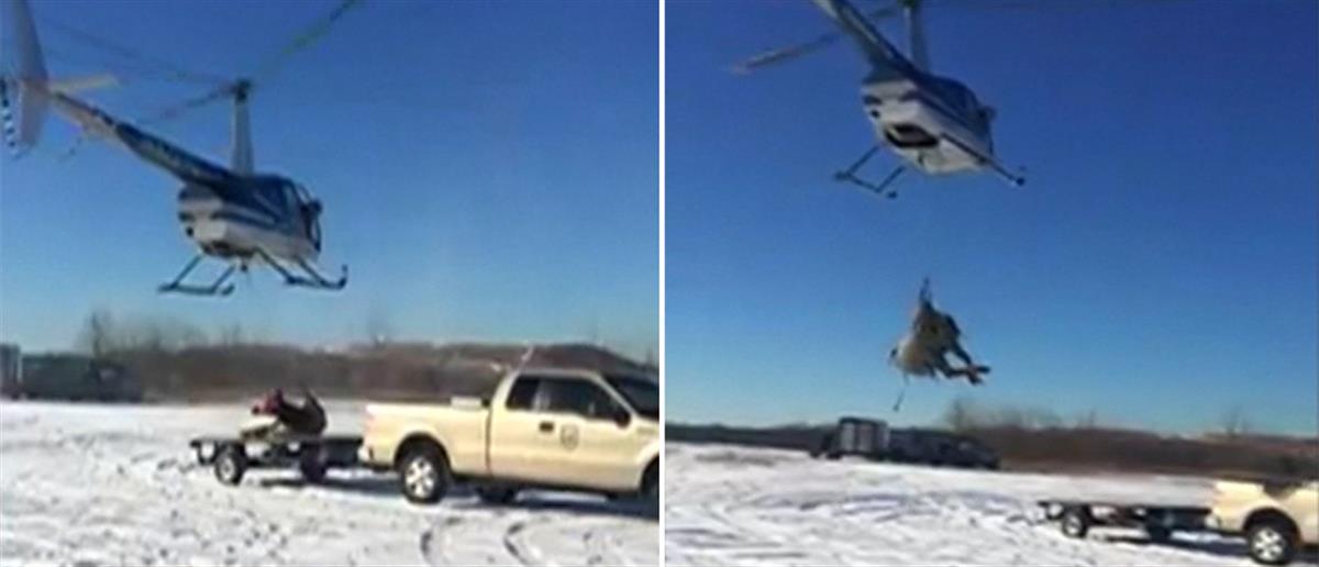 Τα τεράστια ελάφια κρέμονταν από τα ελικόπτερα, τα οποία πήγαν για να τα πάρουν από πάρκο της πολιτείας, για να τα μεταφέρουν σε άλλο σημείο.
